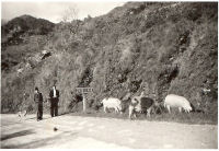 Retour de chasse dans la région de Bocognano 1940: le chien à l'extrême droite semble de type cursinu |