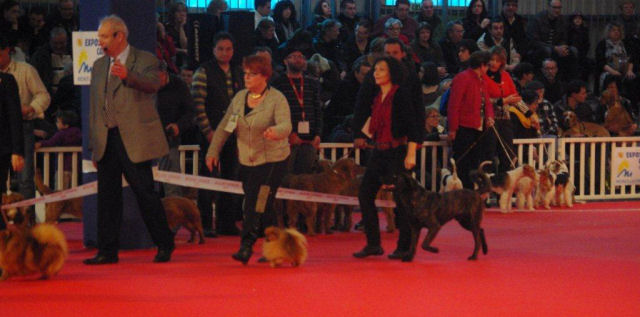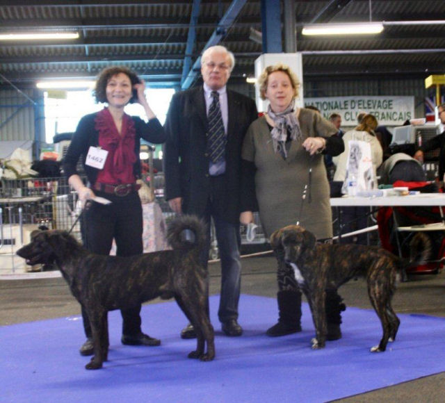 Seuls deux Cursini avaient fait le déplacement pour représenter notre race sur l'exposition de Montluçon. M. Medard Ringuet a eu l'extrême plaisir de juger cette race qu'il affectionne particulièrement en attribuant un "très prometteur" à H'Timpesta Di i Ribelli Di Terra Corsa née chez Mr Cano et un "excellent" à Gricciu né chez Mr Ferrari , il a souligné la qualité de la sélection des différents éleveurs de l'ile qui font depuis des années des efforts de sélection pour notre race. Deux rings d'honneur pour notre race avec H'Timpesta Di i Ribelli di Terra Corsa en "puppy" et Gricciu en "groupe 5". Me Dessernes qui présentait et animait le ring d'honneur avait demandé que l'ont passe un chant corse pendant la présentation des races du 5eme groupe afin de souligner la présence du cursinu et cette attention nous a fait "chaud au cœur". Anne Marie Brossard Simèan, IsabelleRouzes.