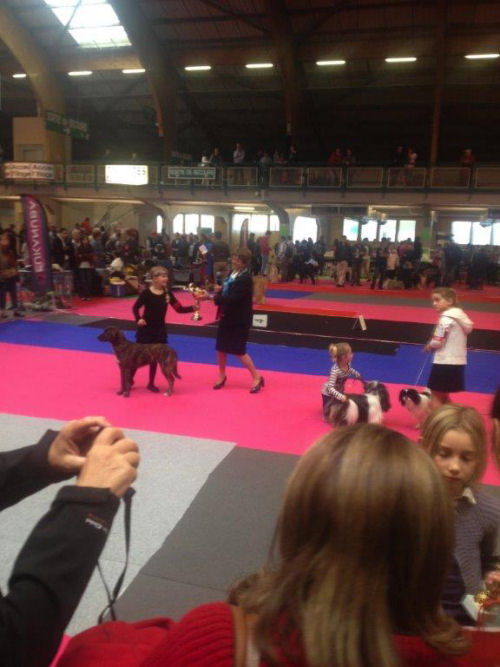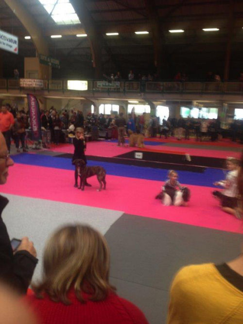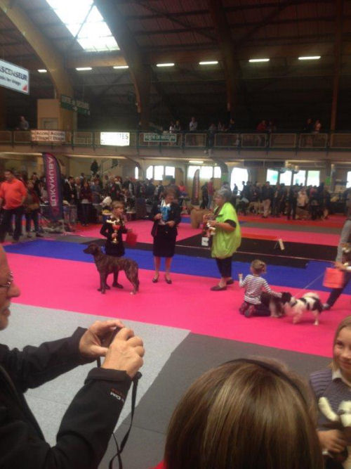 Exposition Internationale Canine - ORLÉANS- 12 octobre 2014 - Juge : M. Claude VOILET Une magnifique mais " bruyante " exposition. L'après-midi, on peut noter une excellente performance du duo Savéria AUGEREAU / IFFANA DI I RIBELLI DI TERRA CORSA qui termine première du concours jeunes présentateurs (classe 6-10 ans) sur 16 participants. Ce binôme fut jugé par Mme Jeannette LARIVE.