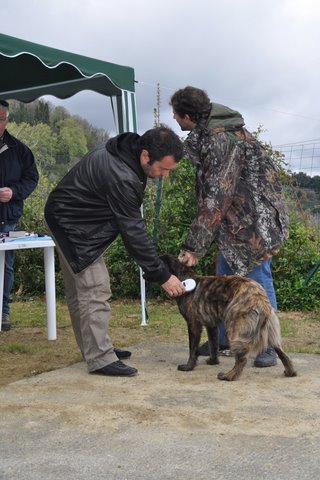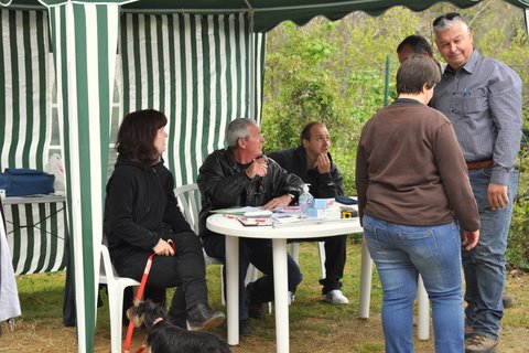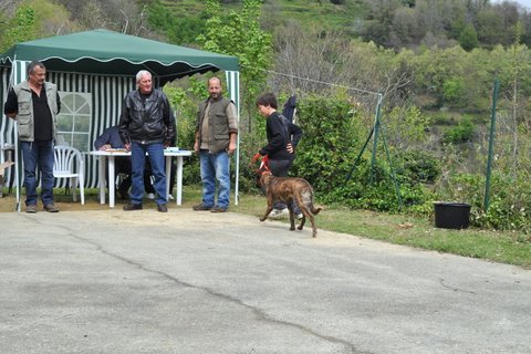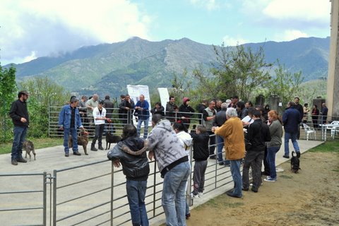 Rings spacieux sur une esplanade à l'écart de la Foire de la Castagniccia, tente de protection pour les juges, lingettes de désinfections, abreuvoirs pour les chiens, création d'un panneau d'information, permanence vétérinaire pour l'identification et au total 12 confirmations le matin dont six à titre de la descendance et l'après midi une présentation de sujets avec "explication de texte" devant un public nombreux et attentif.