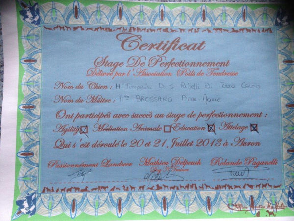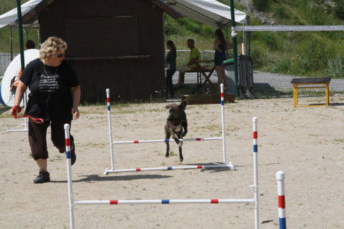 AURON - 20 et 21 juillet 2013 Stage canin d'attelage, d'agility, d'éducation canine et de médiation animale Le week end du 20 et 21 Juillet, nous étions H'Timpesta et moi à un stage dans une station de ski dans les Alpes Maritime à Auron. C'était un stage canin d'attelage, d'agility, d'éducation et de médiation animale. Le stage s'est remarquablement bien passé avec une ambiance appréciée. Je remercie les organisateurs et les bénévoles qui ont fait un super travail pendant ces deux jours. H'Timpesta n'avait jamais fait d'agility. Le samedi elle ne savait rien faire, le dimanche elle franchissait tous les obstacles. Elle est passée aux différents ateliers de médiation, d'attelage et d'obéissance sans soucis. C'est vraiment une race exceptionnelle, qui a une faculté d'apprentissage impressionnante. Anne-Marie BROSSARD Déléguée Provence Côte d'Azur Vidéo de H'timpesta au stage d'agility, éduquée par Rolande PAGANELLI. Monitrice très impliquée dans le monde du chien. Elle a déjà officié au stage chien visiteur et éducation naturelle à Porto Vecchio et aide les personnes éprouvant des difficultés à éduquer leur chien à Serra Di Ferro. Après avoir connu Filitella et H'timpesta di i Ribelli Di Terra Corsa, elle pense que le cursinu peut briller dans cette discipline. Dans le cas où la vidéo ne s'afficherait pas, consultez-là sur : http://www.youtube.com/watch?v=q1vaS2qJm2c&feature=youtu.be Place aux photos : ![]() ![]() ![]() ![]() ![]() ![]() ![]() |
